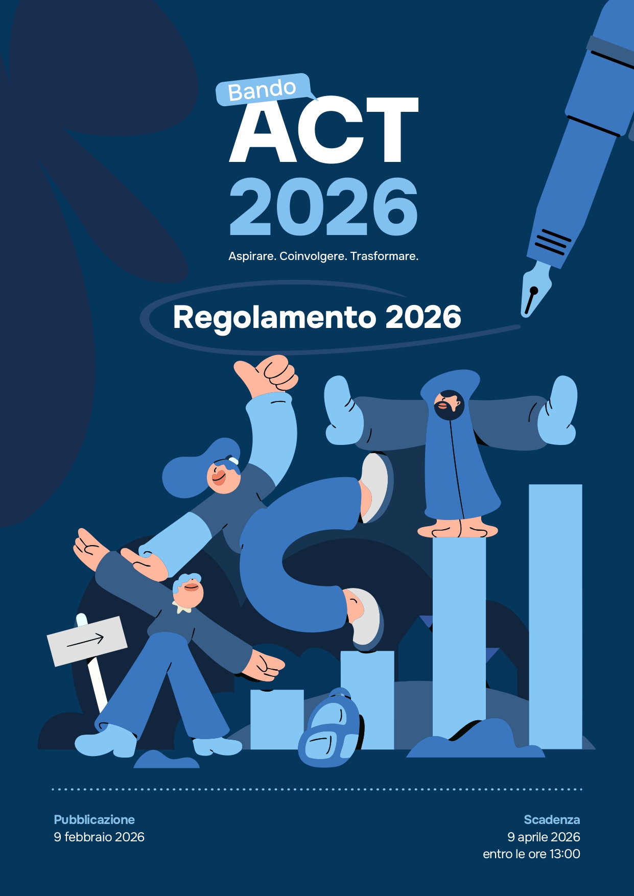 È online il Bando ACT 2026 – Aspirare. Coinvolgere. Trasformare., promosso da Fondazione Unipolis, con una dotazione complessiva di 450.000 euro a sostegno di progettualità ad alto impatto sociale.